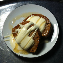 - Enjoy! Cut a thick slice and serve for Brunch with a generous dollop of Maple Yogurt and a drizzle of Maple Syrup; or for a great Dessert presentation, glaze with Maple Cream – the whole cake or by the slice; or for Breakfast, toast a medium thick slice and serve warm spread with Maple Butter.